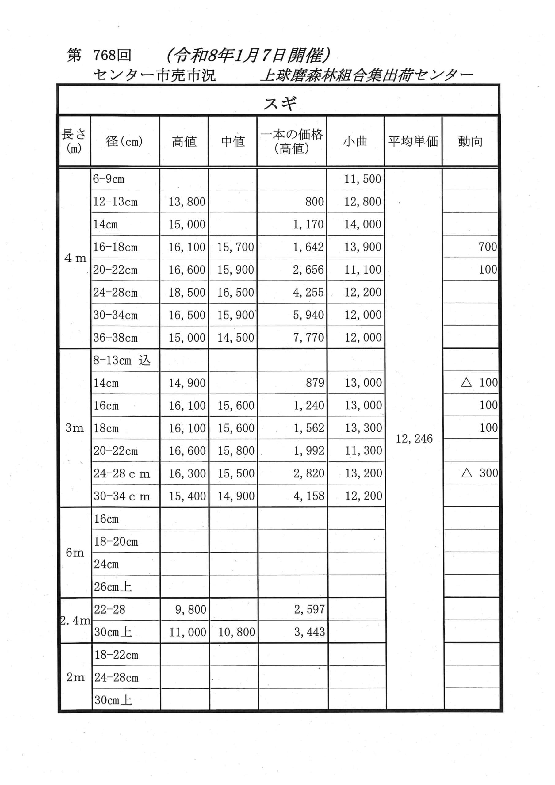 杉—–3mは横ばいで取引4mもほぼ横ばいで取引 桧—–製品の売行きが悪いため、全体的に値下げ |