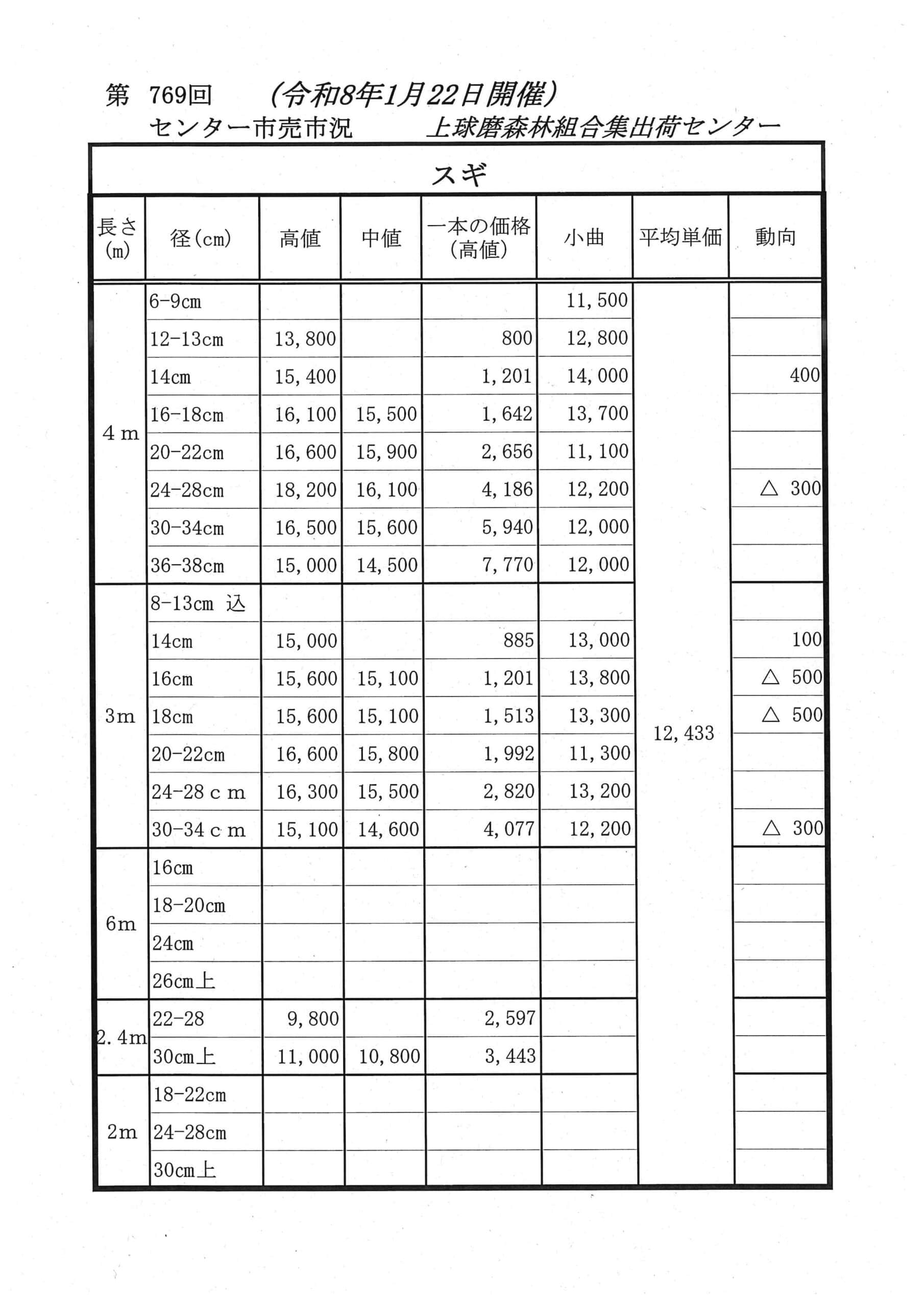 杉—–一部では値上げも多くは値下げで取引 桧—–製品の売行きが悪いため、全体的に値下げ |