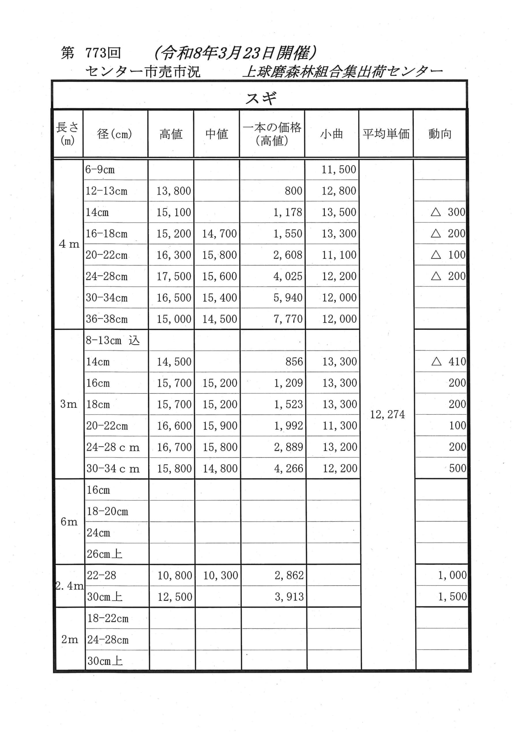 杉—–値上げあるものの弱気配 桧—–値下げ傾向 |